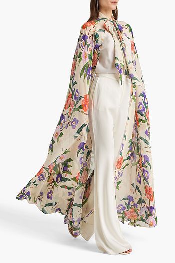 Floral-print jacquard wrap jacket