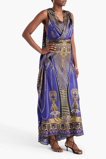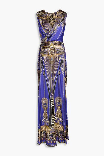 Crystal-embellished printed silk-twill maxi dress
