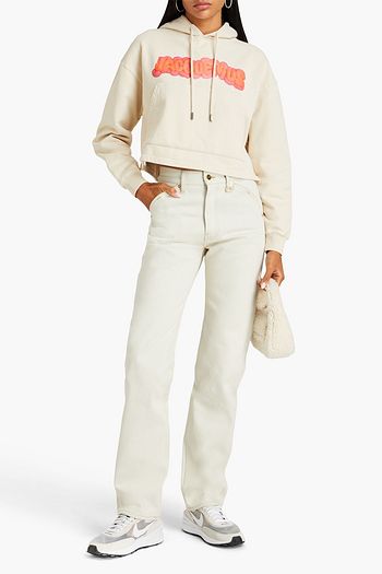 Frayed embellished cropped straight-leg jeans