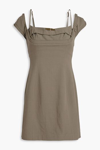 Cutout draped stretch-twill mini shirt dress