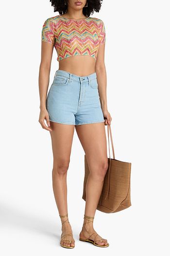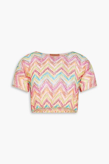 Cropped crochet-knit top