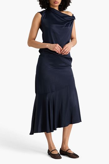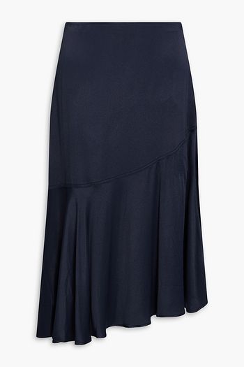 Asymmetric satin-crepe midi skirt