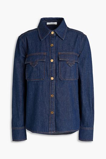 Crystal-embellished denim shirt