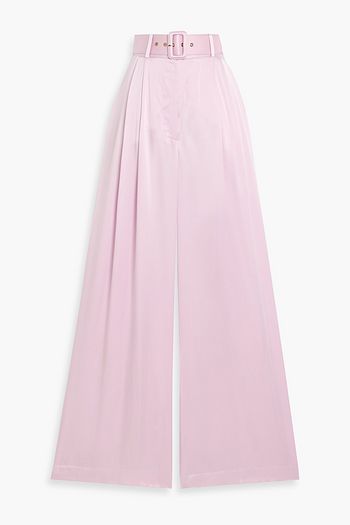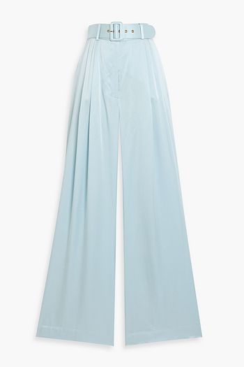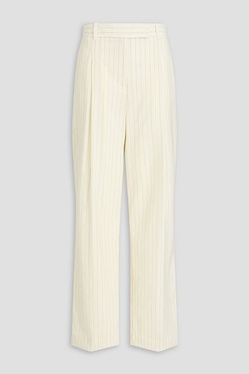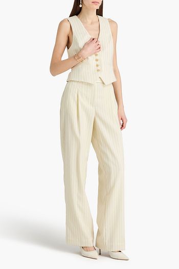 Guipure lace-trimmed linen-gauze wide-leg pants