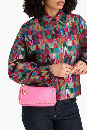 One Piece Demi Lune patent leather-trimmed mesh shoulder bag