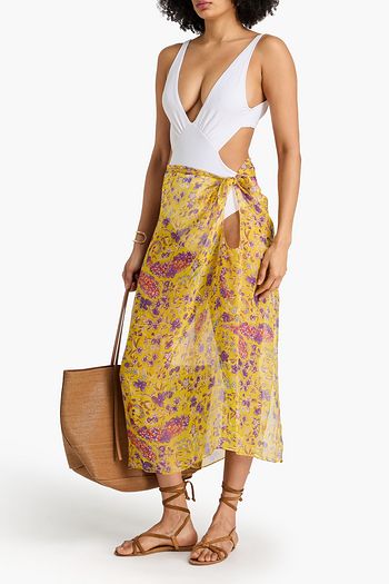 Floral-print crepe de chine pareo