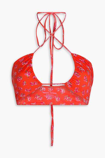 Floral-print bandeau bikini top