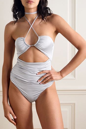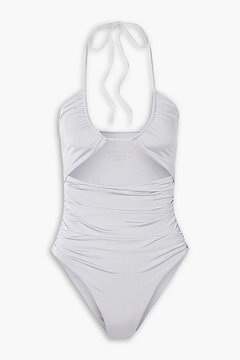 Embellished draped halterneck swimsuit