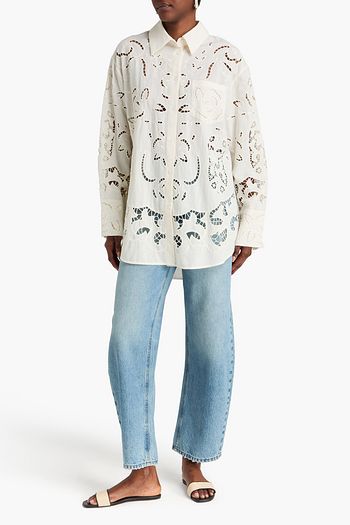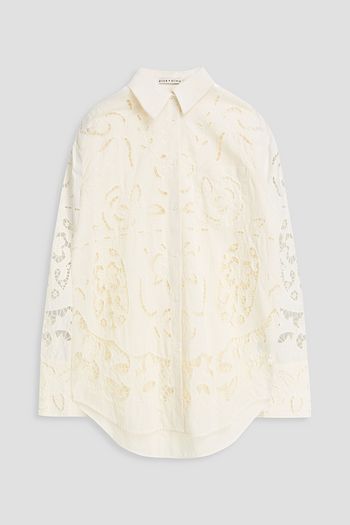 Finely broderie anglaise cotton and linen-blend shirt