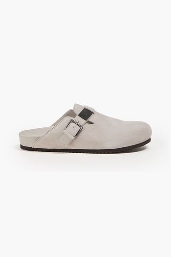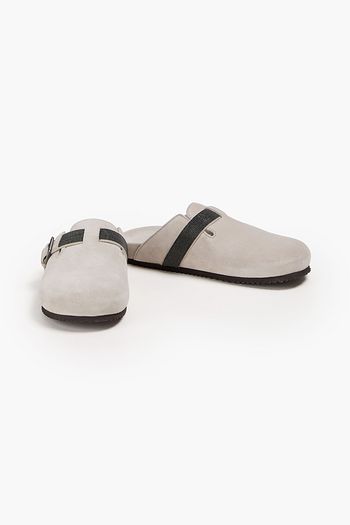 Bead-embellished suede clogs