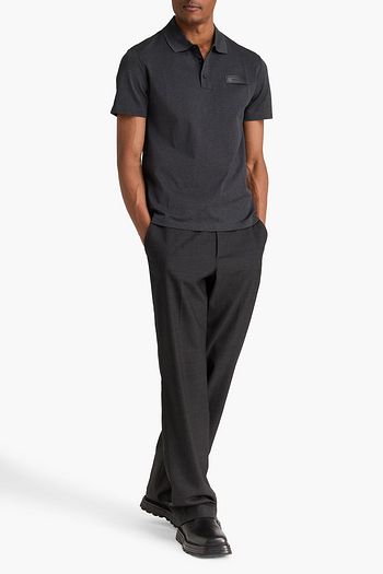 Leather-trimmed cotton-piqué polo shirt