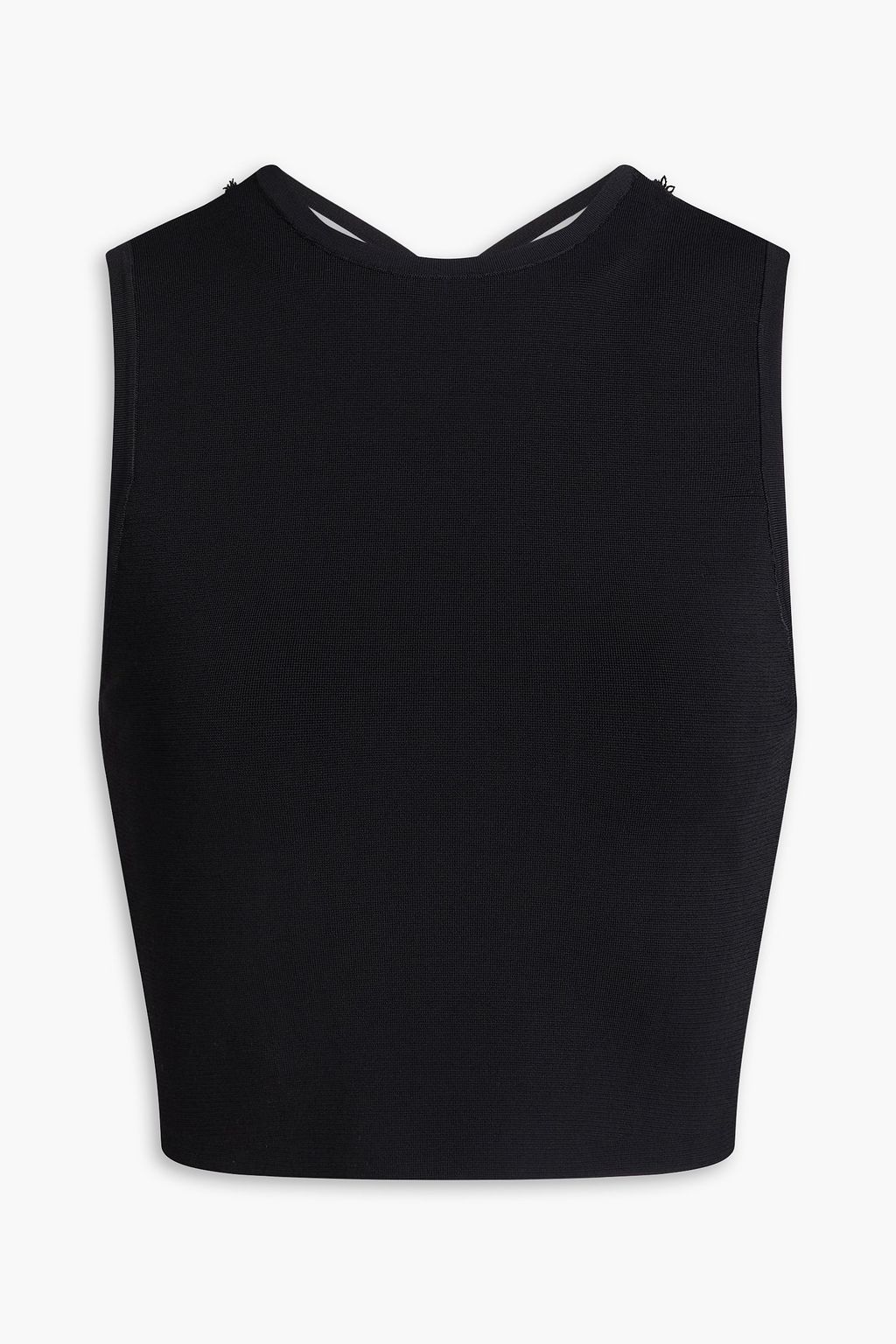 ALICE + OLIVIA Cropped crystal-embellished stretch-knit top