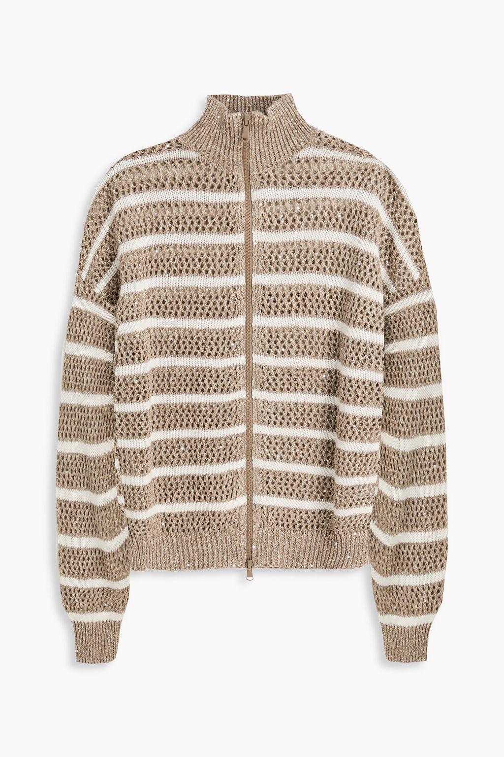 BRUNELLO CUCINELLI Striped open-knit linen-blend cardigan