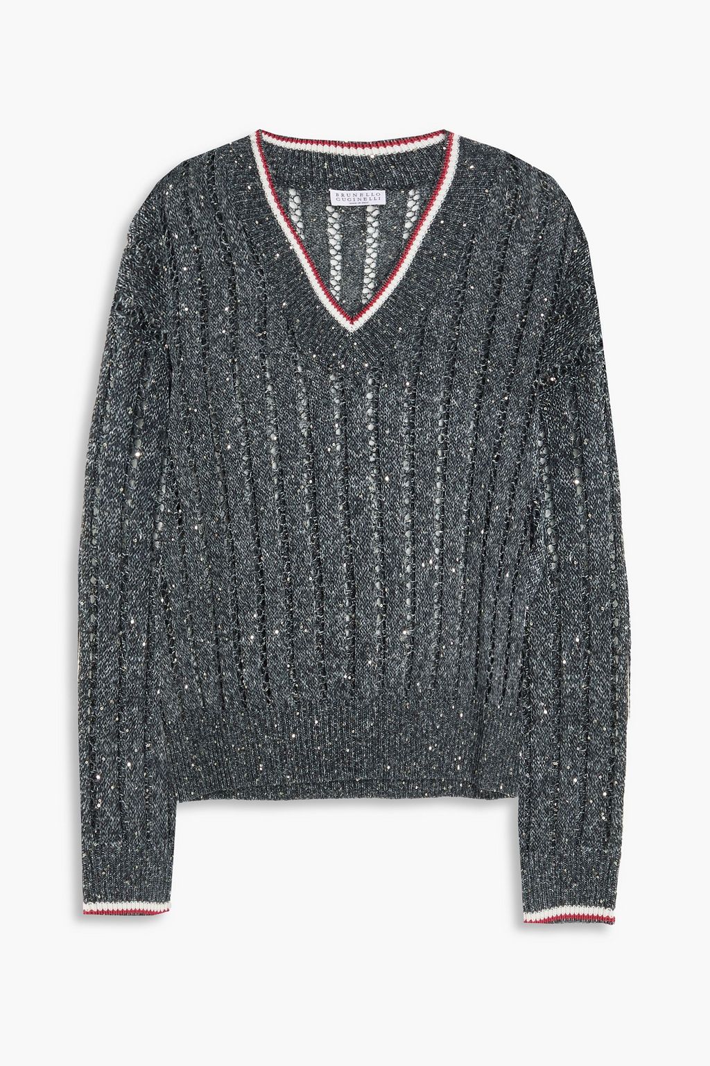 BRUNELLO CUCINELLI Sequin-embellished open-knit linen-blend sweater