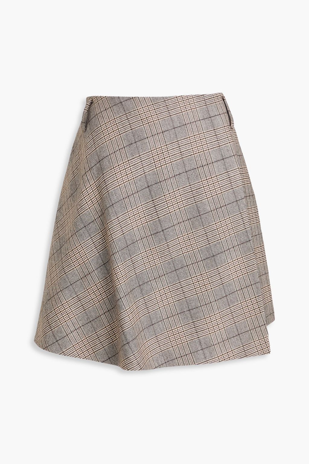 BRUNELLO CUCINELLI Wrap-effect Prince of Wales checked wool-blend mini skirt