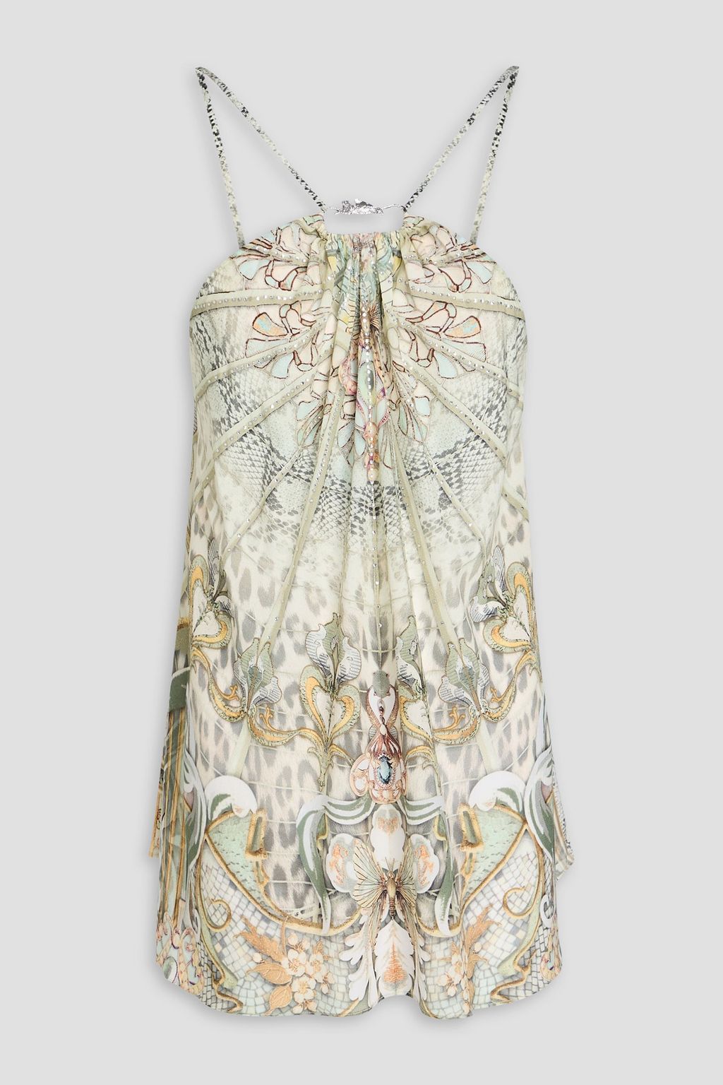 CAMILLA Printed embellished silk crepe de chine camisole