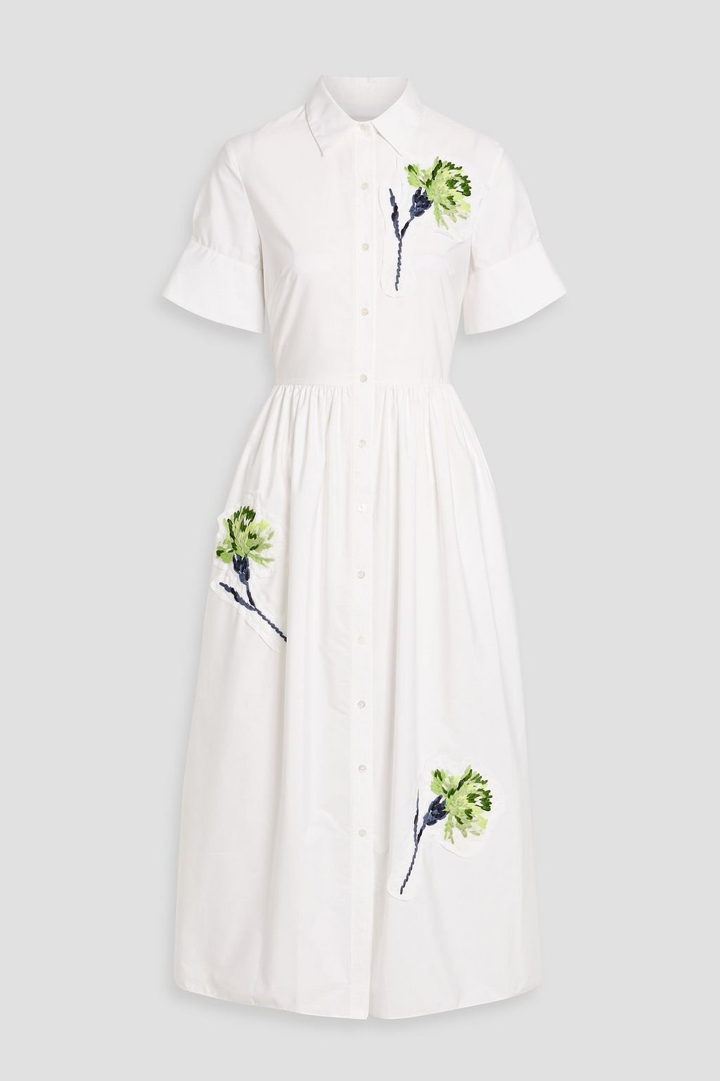 ERDEM Embroidered cotton-poplin midi shirt dress