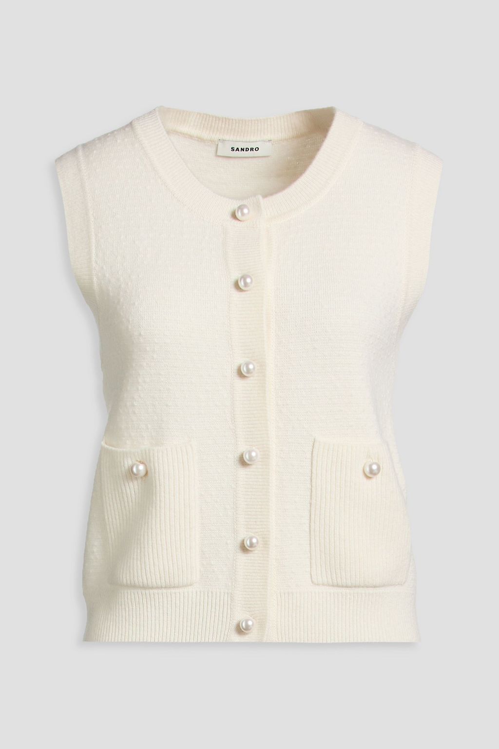 SANDRO Faux pearl-embellished bouclé-knit wool-blend vest