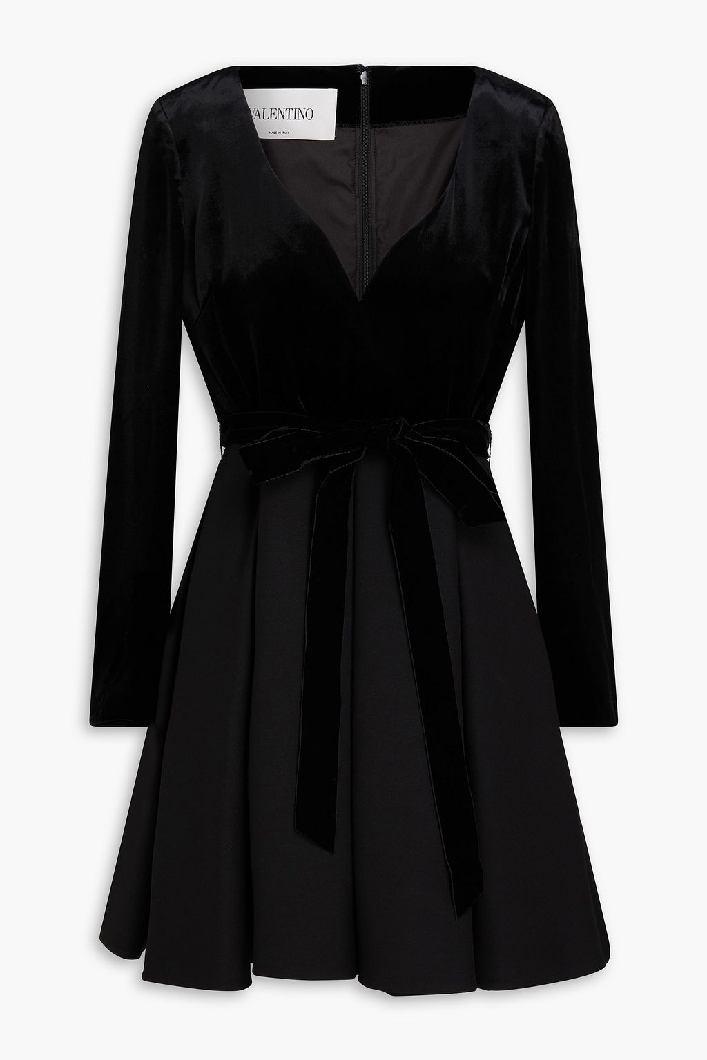VALENTINO GARAVANI Velvet-paneled wool and silk-blend crepe mini dress
