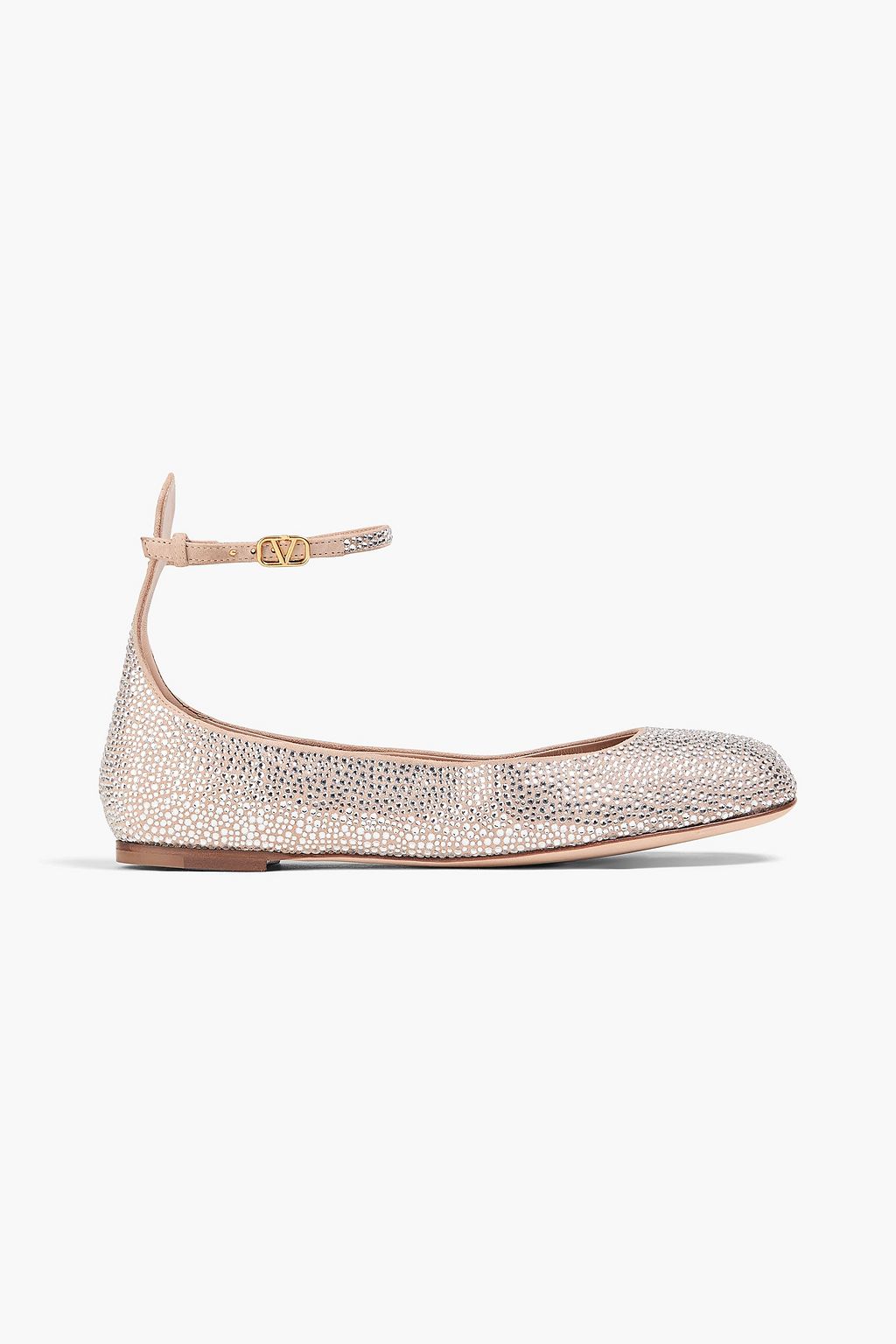 VALENTINO GARAVANI Crystal-embellished suede ballet flats