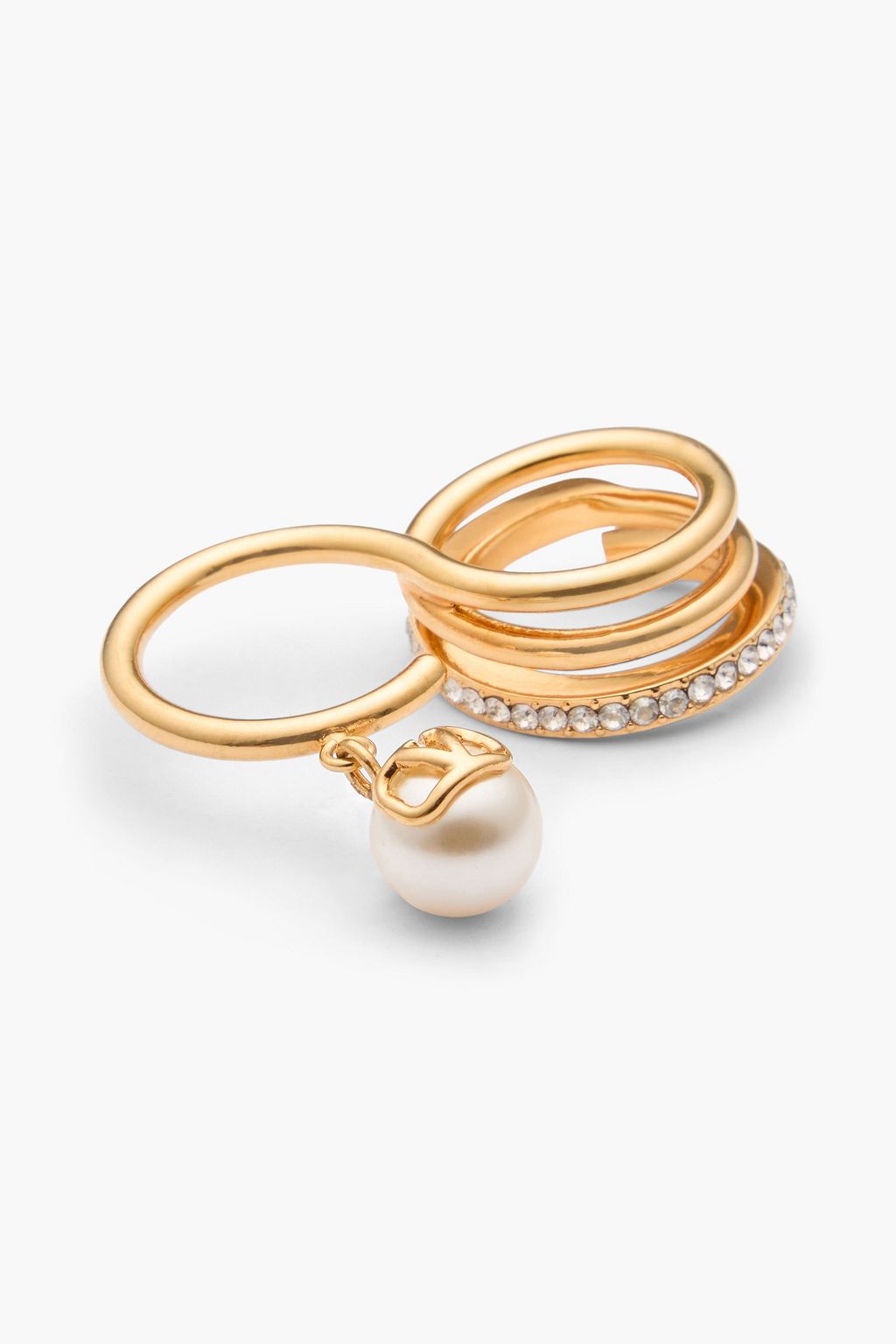 VALENTINO GARAVANI 18-karat gold-plated crystal and faux pearl ring