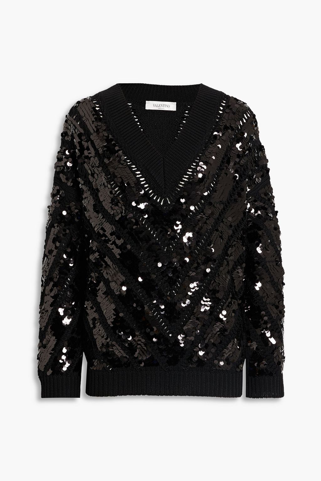 VALENTINO GARAVANI Sequined pointelle-knit wool sweater