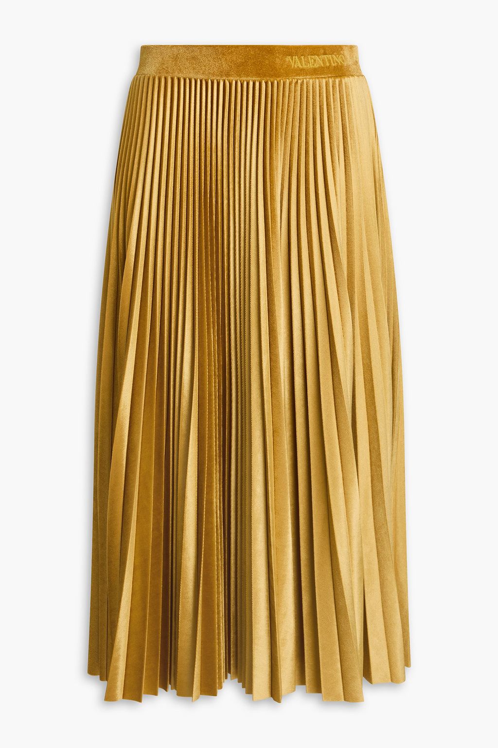 VALENTINO GARAVANI Pleated stretch-velvet midi skirt