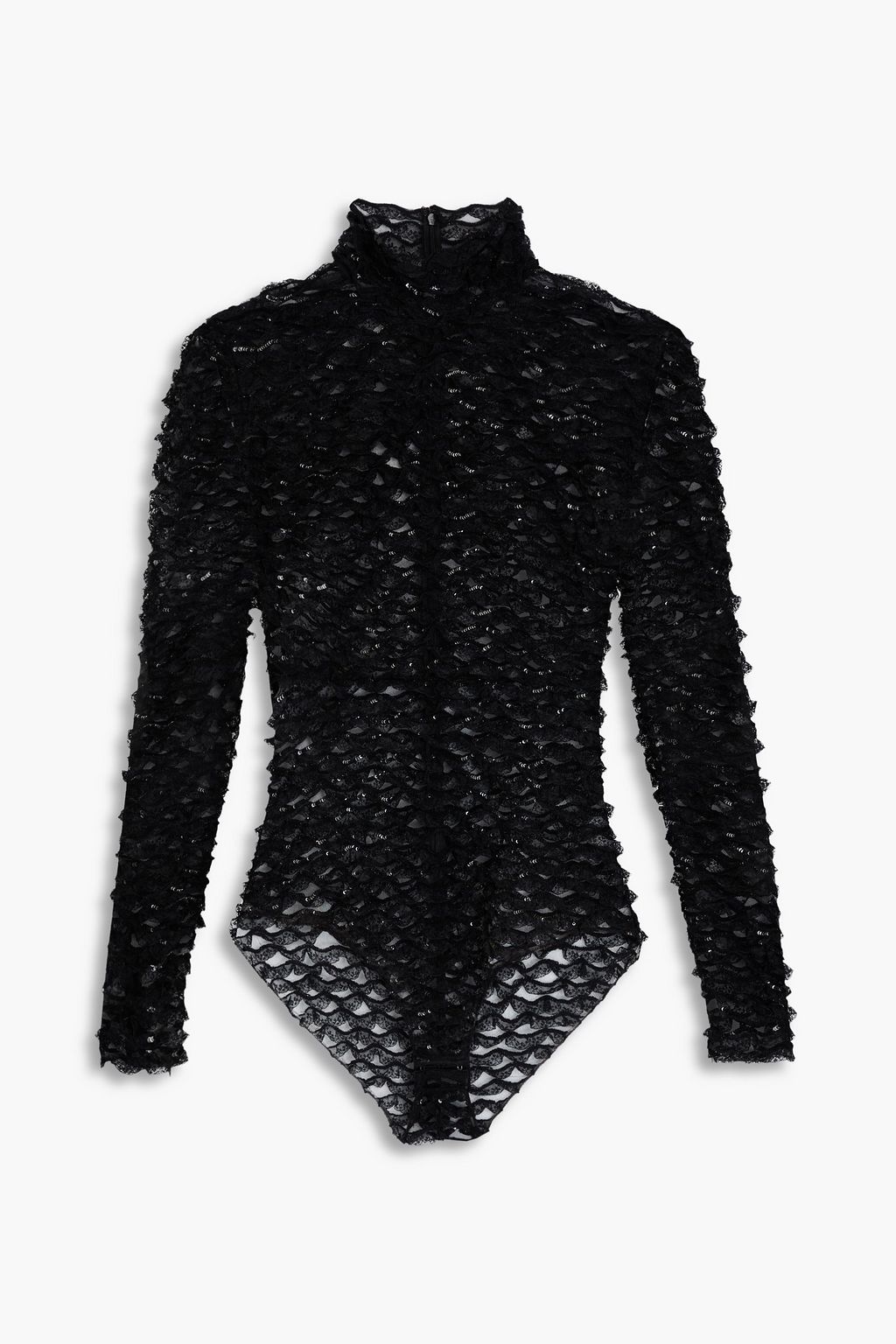 VALENTINO GARAVANI Embellished tulle turtleneck bodysuit