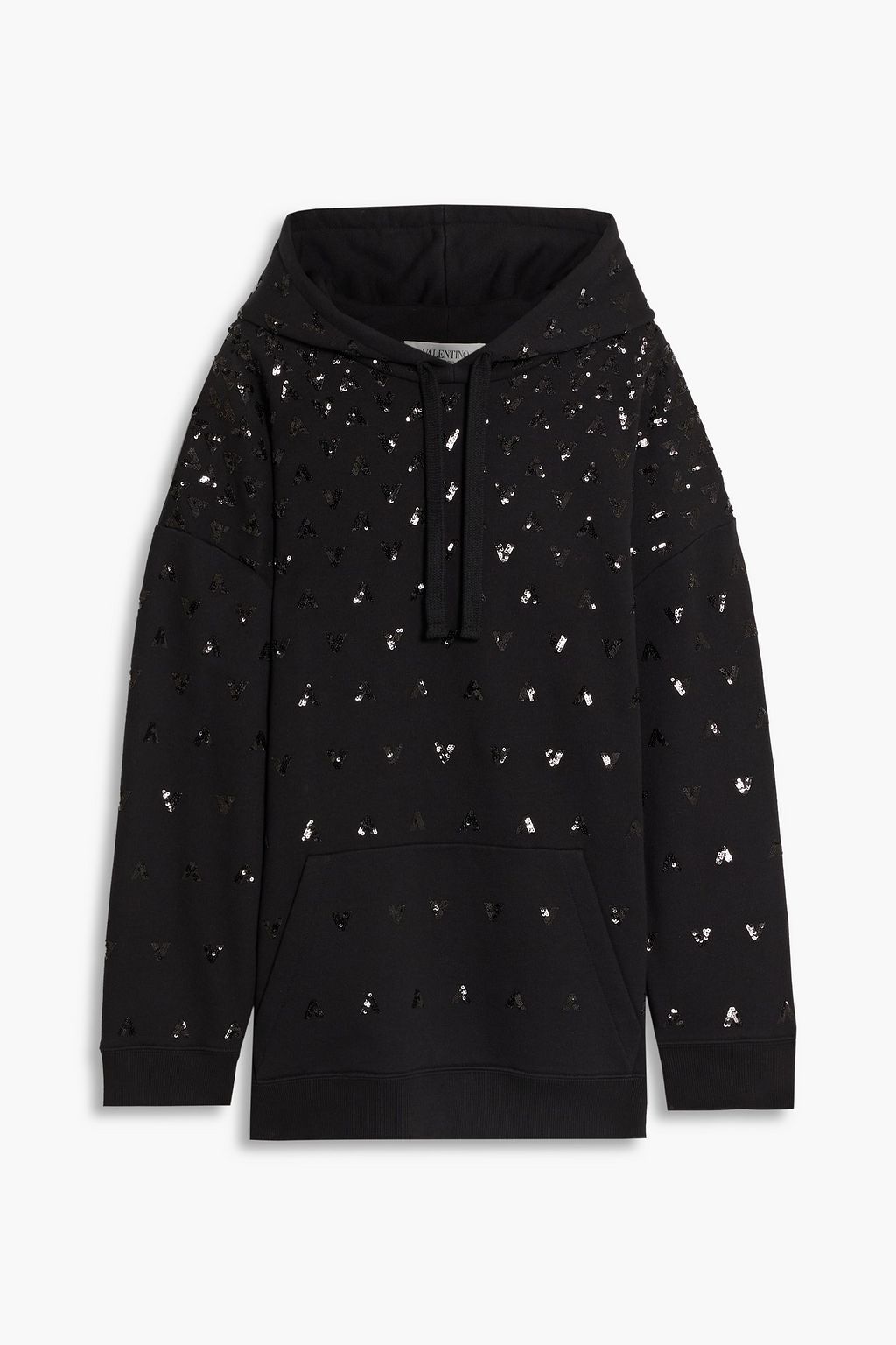 VALENTINO GARAVANI Sequin-embellished French cotton-terry hoodie
