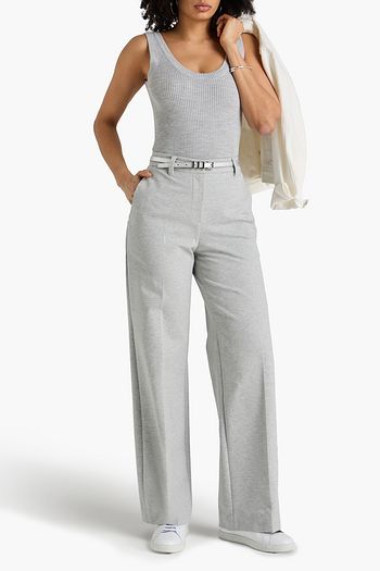 Pleated cotton-blend wide-leg pants