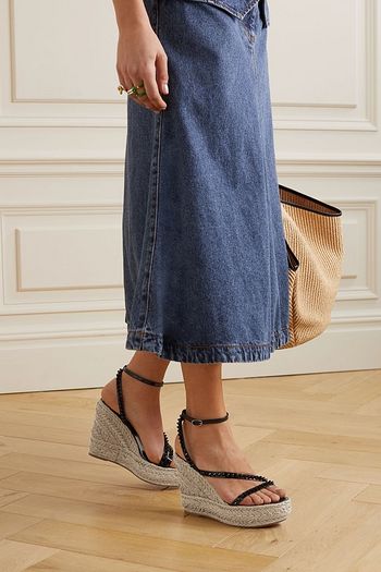Mafaldina Zeppa 120 studded patent-leather espadrille wedge sandals