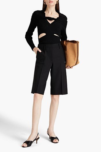 Knotted cutout ribbed-knit top