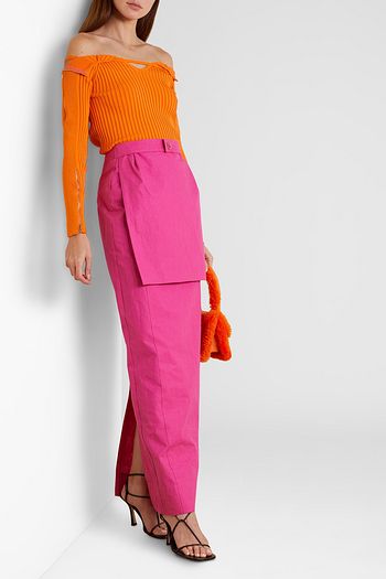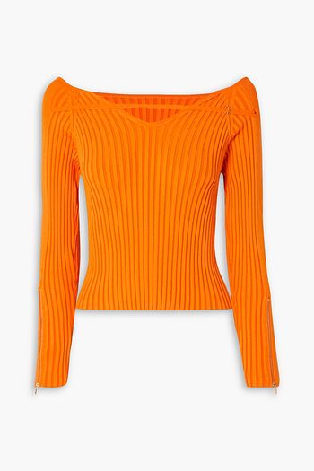 Oro off-the-shoulder cutout ribbed-knit top