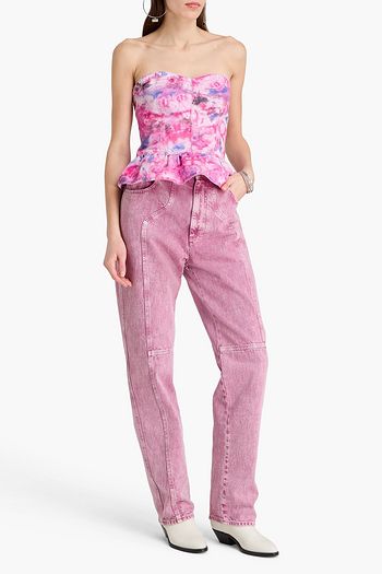 Hominy pintucked acid-wash high-rise slim-leg jeans