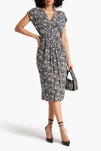 Danalia ruched printed crepe de chine dress