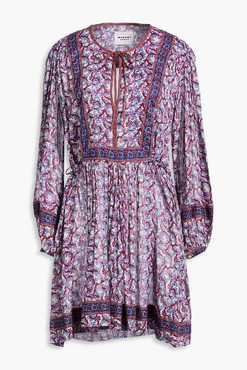 Dulce draped printed crepe de chine mini dress