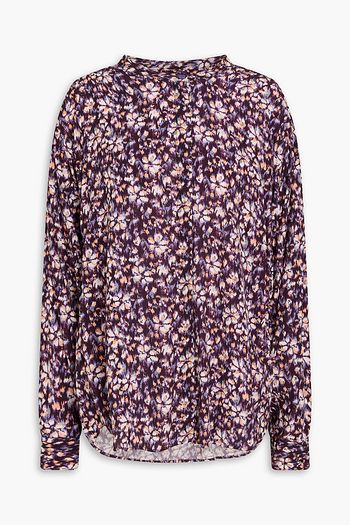 Shirred floral-print crepon blouse