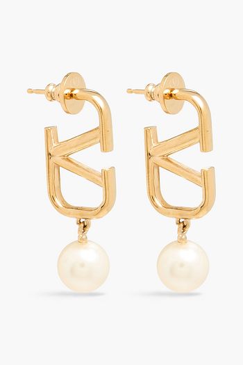 VLOGO gold-tone, faux pearl and crystal hoop earrings
