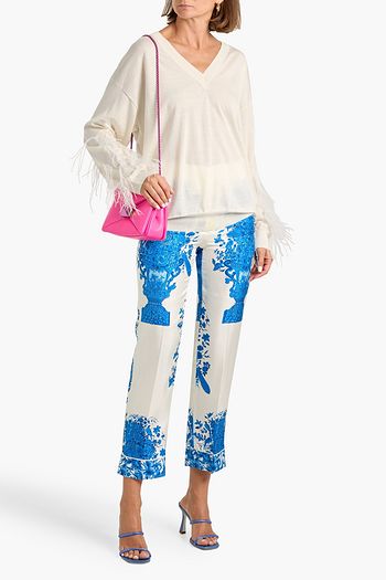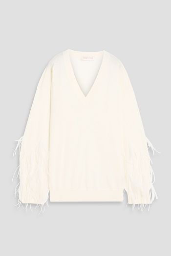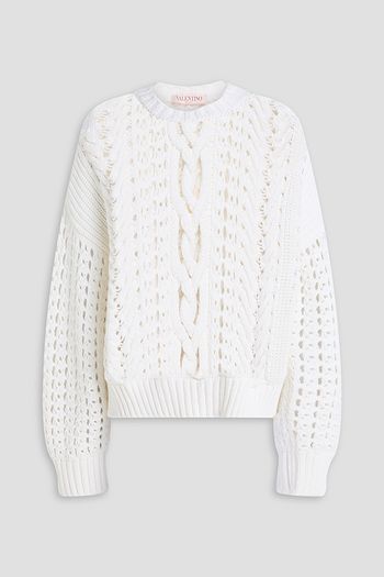 Lace-trimmed cable-knit wool and cashmere-blend sweater