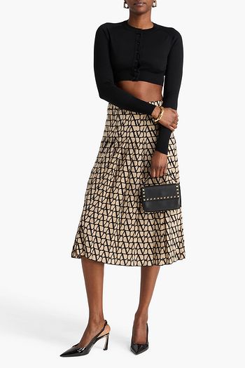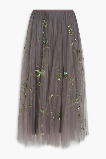 Crepe de chine-trimmed cotton-blend lace mini skirt