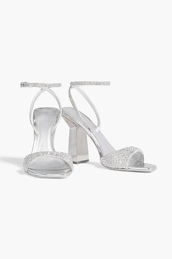 Rockstud bow-detailed patent-leather slingback point-toe flats