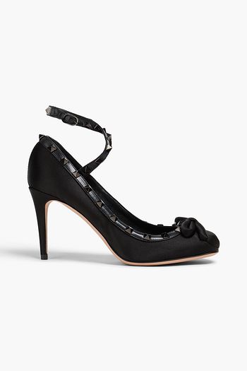 Rockstud Alcove mesh and patent-leather slingback pumps
