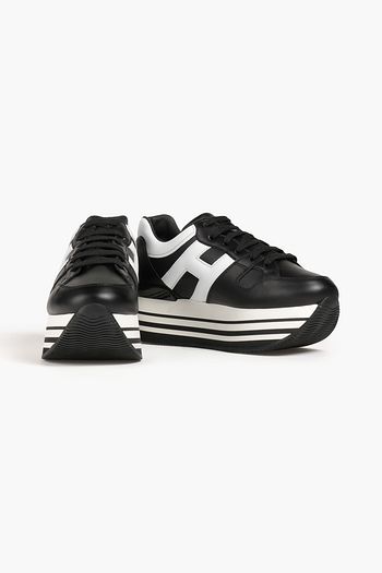 Logo-print faux textured-leather, neoprene and mesh sneakers