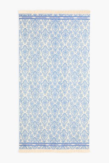 Fringed printed cotton beach towel