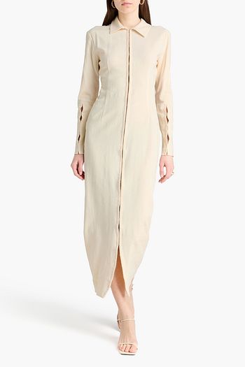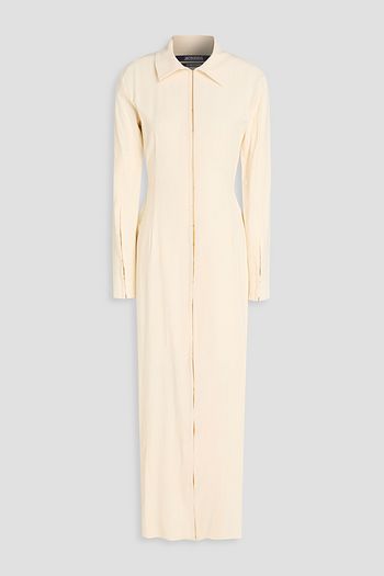 Pleated stretch-jersey mini shirt dress