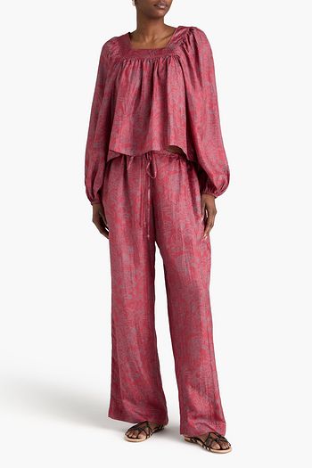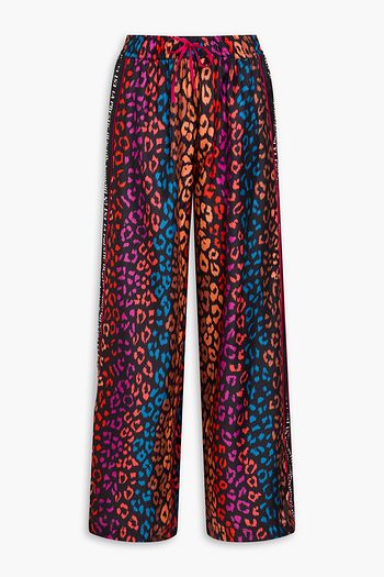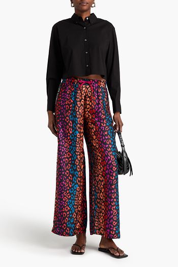 Printed satin-jacquard wide-leg pants