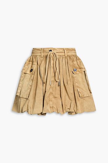 Gathered striped cotton-poplin mini skirt