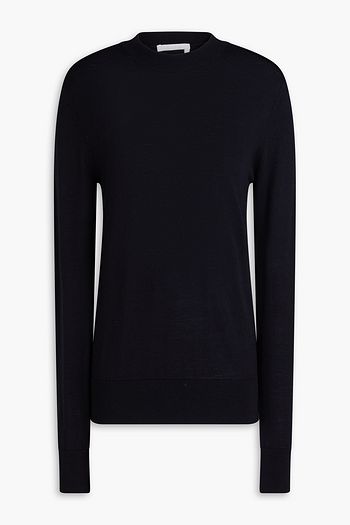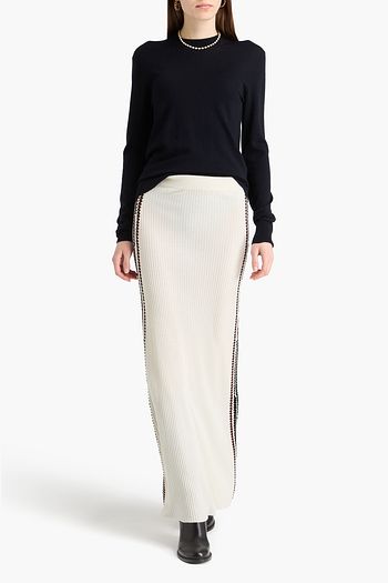 Gauze-paneled ribbed wool and cashmere-blend sweater