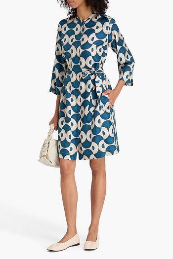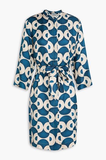 Belted printed silk-twill kaftan
