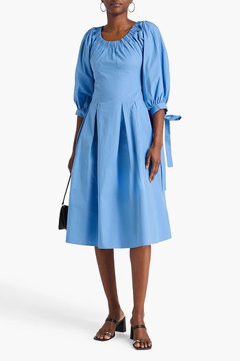 Greta pleated cotton-poplin midi dress